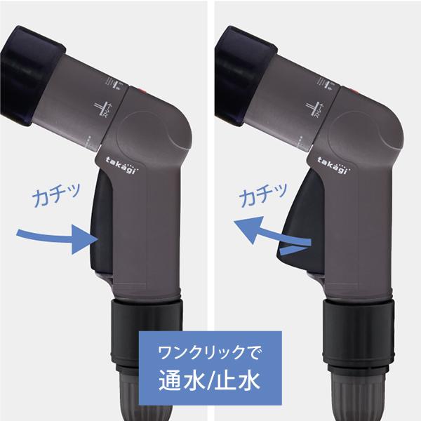 「カチッ」と握ると通水、もう一度握ると止水します。