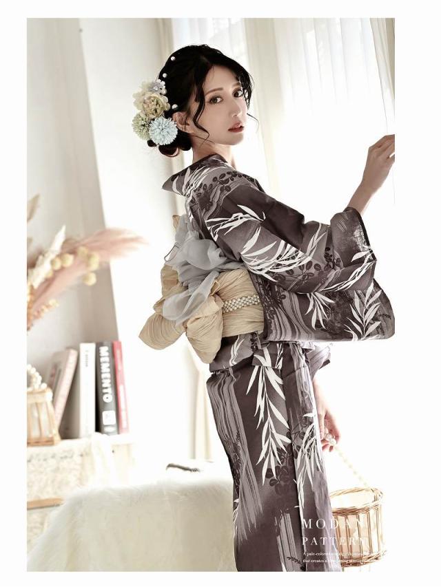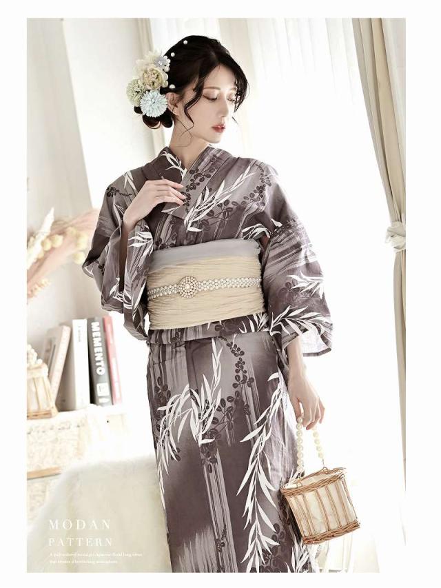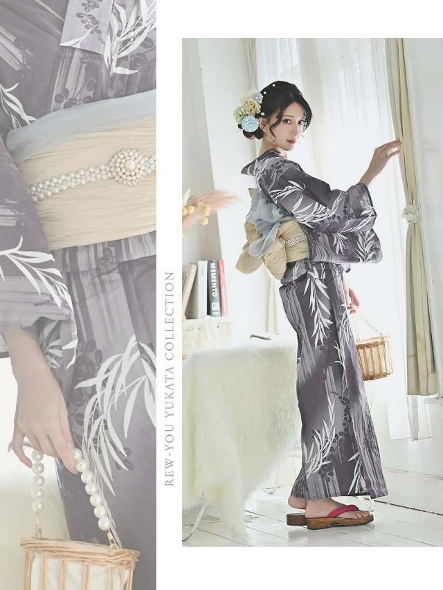 ☆モノトーン×柳模様が上品で色気溢れるレディース浴衣。