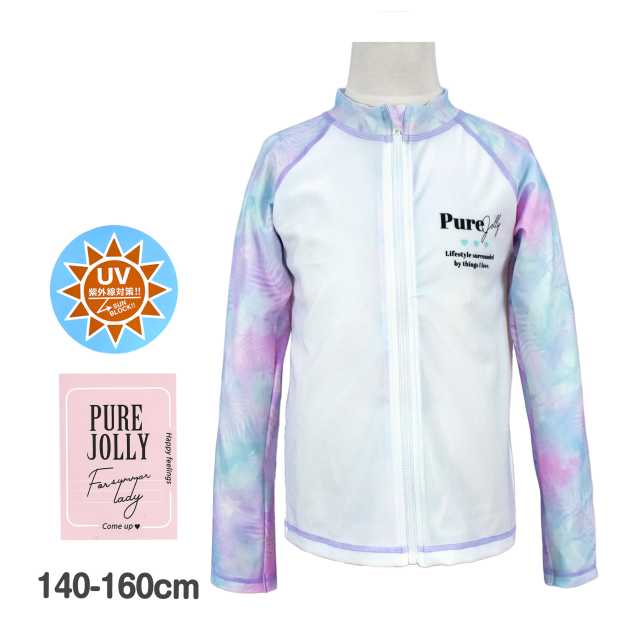 子供 ラッシュガード 長袖 キッズ 女の子 水着 UVカット おしゃれ ジップアップラベンダー