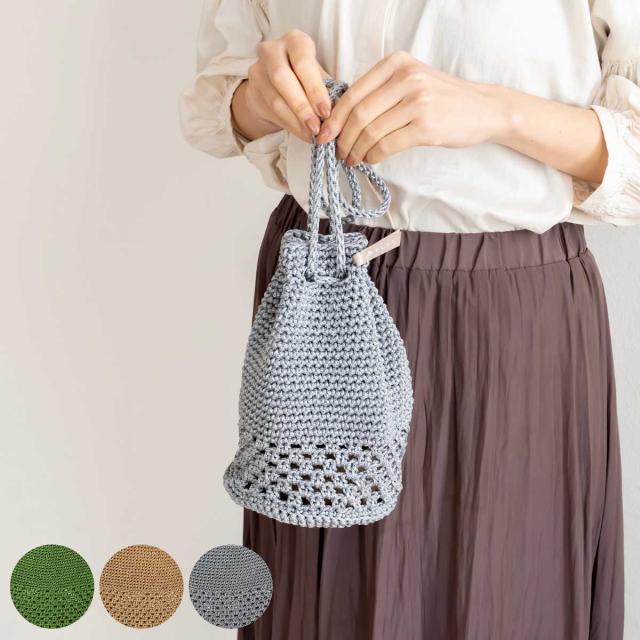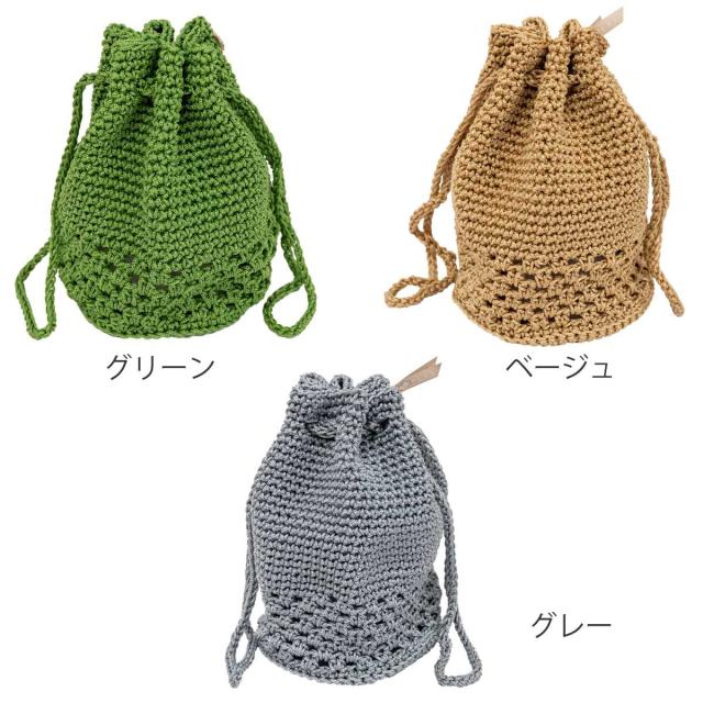 巾着 バッグ マルシェシリーズ ドローストリングバッグ 手編み 洗濯OK ( 巾着バッグ トートバッグ 巾着型 鞄 かばん レディース 買い物 お出かけ おしゃれ マルチトート ショッピング 洗える マチ付き かわいい シンプル )