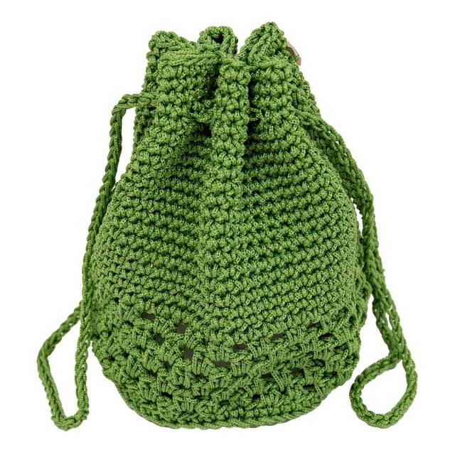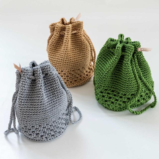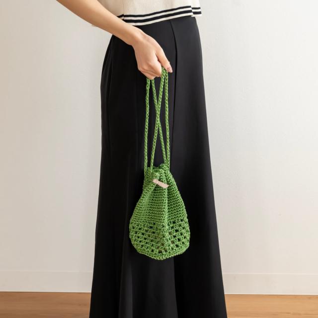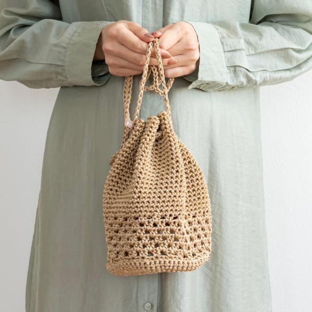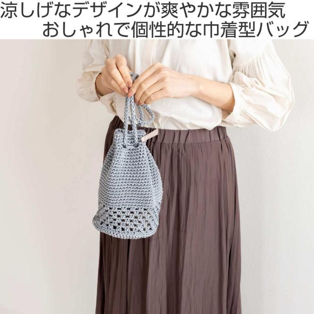 涼しげなデザインが爽やかな手編みの巾着型バッグ
