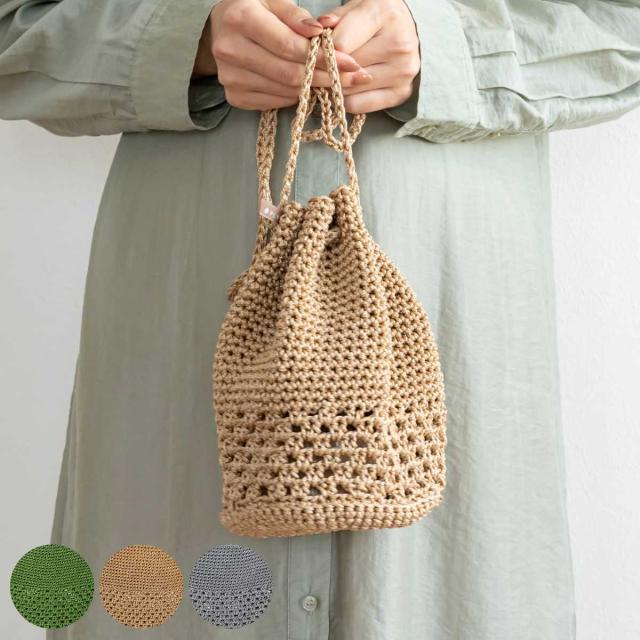 巾着 バッグ マルシェシリーズ ドローストリングバッグ 手編み 洗濯OK ( 巾着バッグ トートバッグ 巾着型 鞄 かばん レディース 買い物 お出かけ おしゃれ マルチトート ショッピング 洗える マチ付き かわいい シンプル )