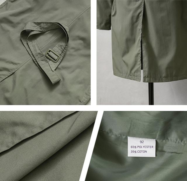 | 商品説明 | 実物 USED フランス軍 オフィサー トレンチコート カーキオリーブのご紹介です。 フランス軍の実物オフィサートレンチコートが入荷しました。 一般的に知られているフランス軍のトレンチコートは、米軍のアイテムでよく見られる、UFO型のファティーグボタンを艶ありにしたような光沢のあるボタンが使用されていますが、こちらにはマーブルボタンのようなデザインが採用され、色目は確かにフランス軍のトレンチコートですが、一部の部隊などに対して限定的に使用されたためか、細部の仕様は若干異なる特別な仕様のトレンチコートです。 カーキとオリーブが混ざったようなカラーに、素材にはT/Cオックスという適度なハリがあるソフトな素材感で、シワになりにくいポリエステルと、肌触りと質感が魅力のコットンの特徴を併せ持っています。裏地には滑りの良いポリエステル系のライニングが袖先まで付いていますのでストレス無く着脱が可能です。 ダブルデザインのフロントや、取外し可能なウエストベルト付きで、様々な着こなしが可能で、ボタンを開けた状態でカジュアルな着こなしもおすすめです。右肩のガンフラップや、ウエスト部分の特徴的なデザインのポケットなどフランス軍らしいクラシカルな雰囲気漂うディテールも魅力のトレンチコートです。 | |||||||||||||||||||||||||||||||||||
