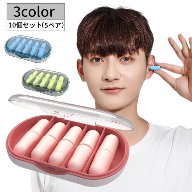 耳栓 5ペア イヤープラグ 耳せん 収納ケース付き 防音 遮音 騒音対策 旅行 安眠 快眠 睡眠 トラベルグッズ リラックスグッ