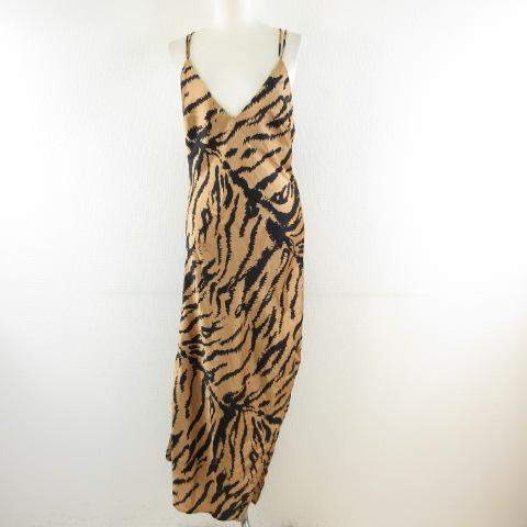 【中古】ザラ ZARA キャミワンピース ロング Vネック アニマル柄 スリット 茶 M *T365 レディース