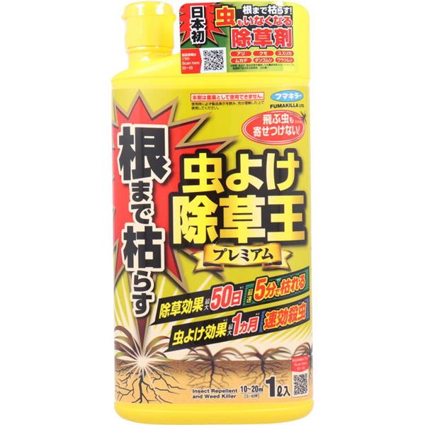 除草剤 虫除け 虫もいなくなる 殺虫除草剤 フマキラー 根まで枯らす虫よけ除草王 プレミアム 1L 3坪-6坪用