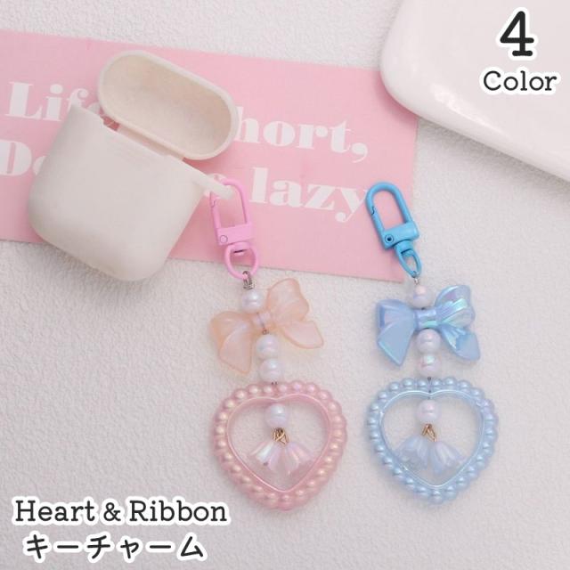 キュートでかわいいハート&リボンのキーチャームです。