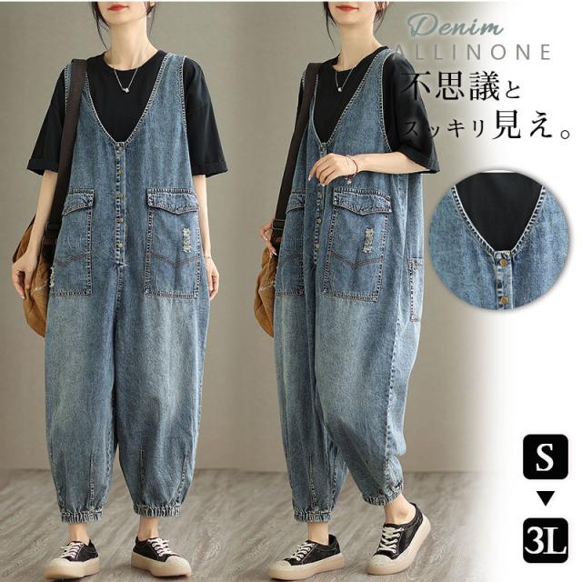 24H限定!クーポン利用で10%OFFデニムサロペット サロペット レディース デニム 送料無料 母の日 大きいサイズ オーバーオール オールインワン ポケット ロング 春 夏新作 夏 秋
