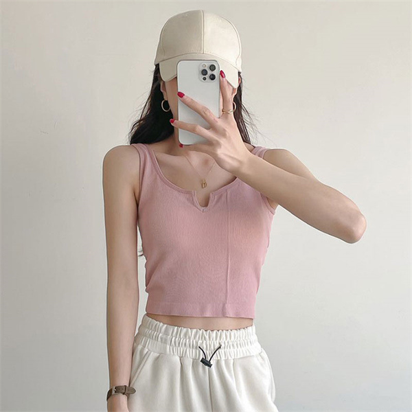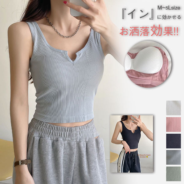 24H限定!クーポン利用で10%OFF タンクトップ カップ付き レディース キーネック タイト インナー 薄手 インナートップス 接触冷感 インナー 肌着 無地 シンプル 涼しい