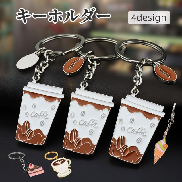 キーホルダー キーリング 鍵ホルダー 女性 男性 女の子 男の子 雑貨 金属製 コーヒーカップ型 ケーキ型 ソフトクリーム型 プ
