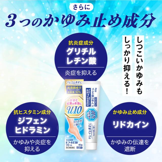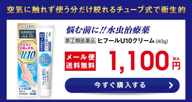 抗真菌成分+尿素10%が配合されたヒフールU10クリームは1日1回の使用により、角質層の深部まで浸透し水虫菌をしっかり殺菌します。