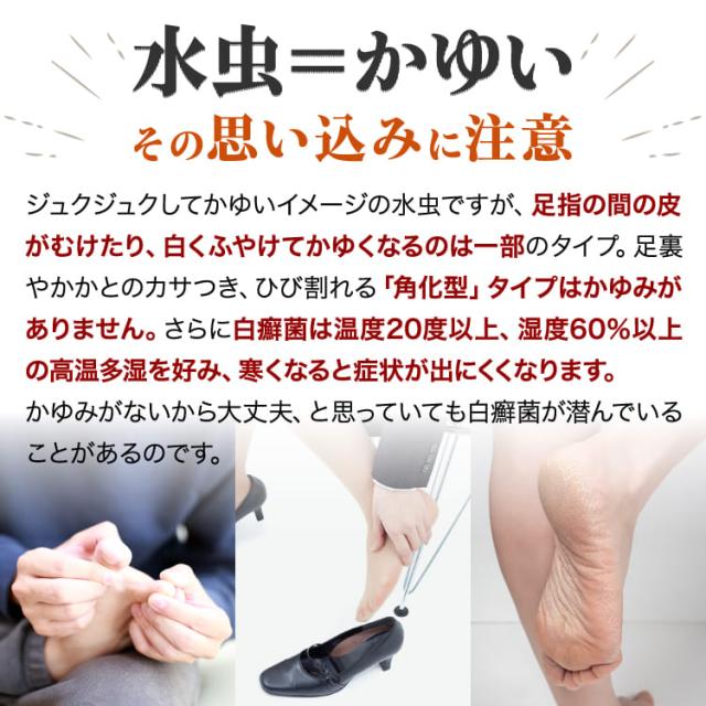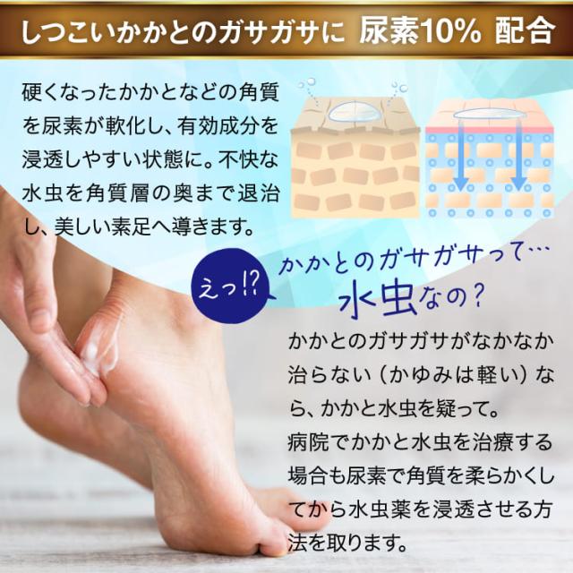 硬くなったかかと等の水虫は、角質層が他の部分より厚く薬が浸透しにくくなっています。