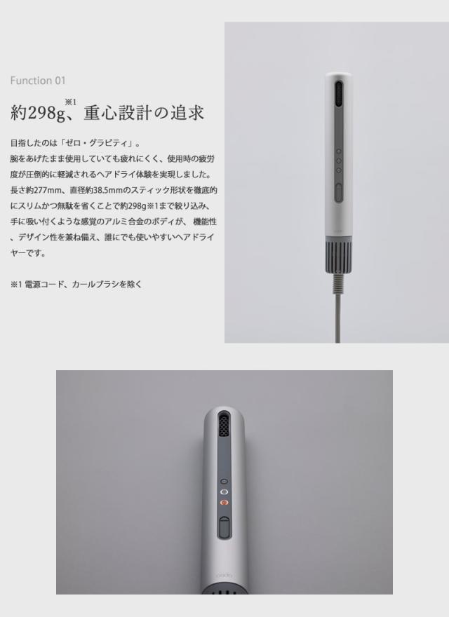 2017年より5年以上の歳月を費やし、理想のドライヤーの形を追求した独自の発想をもとに、軽量化と効率的な送風機能の両立を、リレー競技用バトンのサイズで実現しました。