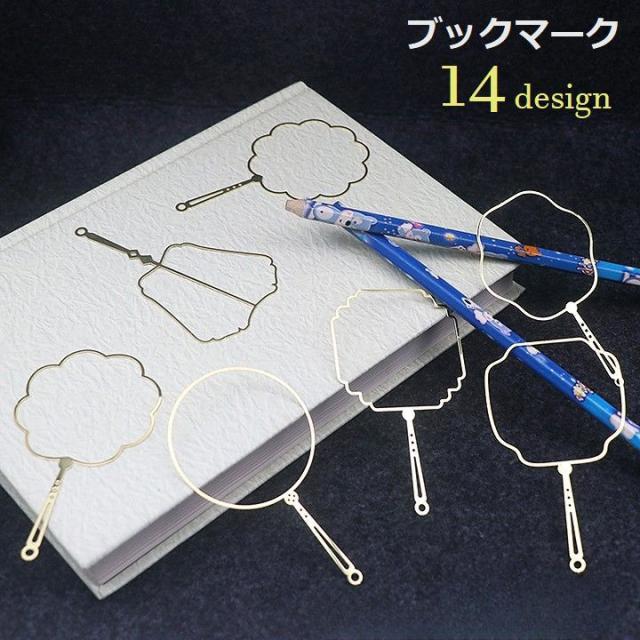 ブックマーク しおり 文具 ステーショナリー 金属製 うちわモチーフ 円形 サークル 四角 スクエア 扇形 おしゃれ かわいい