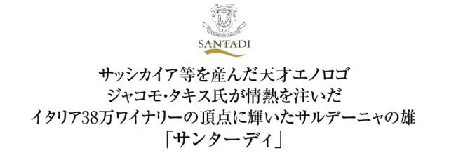 | 深いルビー色。 ビターチョコやダークチェリー、干したプラムなどの香り。 透明感のある国際的な果実味とブラックオリーブ、ドライトマトのようなイタリアらしさに加えてサルディーニャ島の完熟感を見事に表現したサンターディの上手さが光る一本。 |