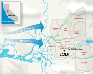 ![]() | “ジンファンデルの首都”と呼ばれ、高品質なジンファンデルが多く造られるカリフォルニア州最大規模のワイン生産地ロダイ オーク・リッジ・ワイナリーがあるロダイは、カリフォルニア州セントラルバレーの北部に位置し、「ジンファンデルの首都」と呼ばれるほど高品質なジンファンデルが多く造られるカリフォルニア州最大規模のワイン生産地です。 土壌は、水はけが良いミネラル豊富な砂質粘土。乾燥しており日差しが多く暑いエリアですが、朝晩はサンフランシスコ湾から吹く冷涼な風の影響でぐっと冷え込む地中海性気候で、世界的に見てもブドウ栽培に最適な土地です。 |