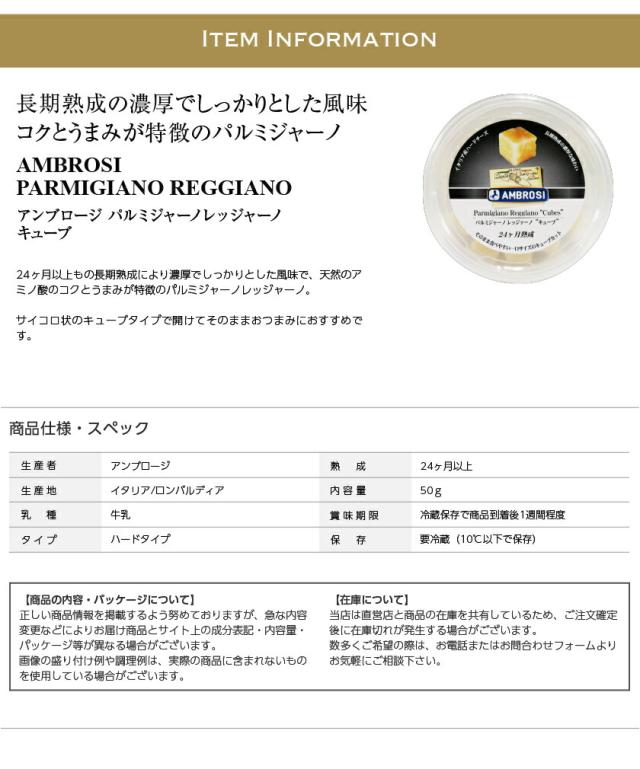 ポイント3倍 イタリア産 ハードタイプ チーズ アンブロージ パルミジャーノ レッジァーノ キューブ 50g 食品 要クール便 包装不可 ワイン(750ml)11本まで同梱可