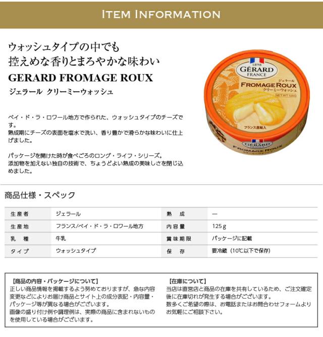 ポイント3倍 フランス産 ウォッシュタイプ チーズ ジェラール クリーミーウォッシュ 125g 食品 要クール便 包装不可 ワイン(750ml)11本まで同梱可