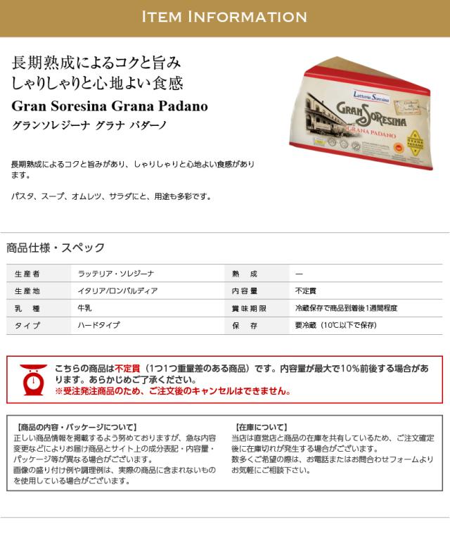 ポイント3倍 イタリア産 ハードタイプ チーズ グランソレジーナ グラナ パダーノ 約900g(810g〜990g) 食品 要クール便 包装不可