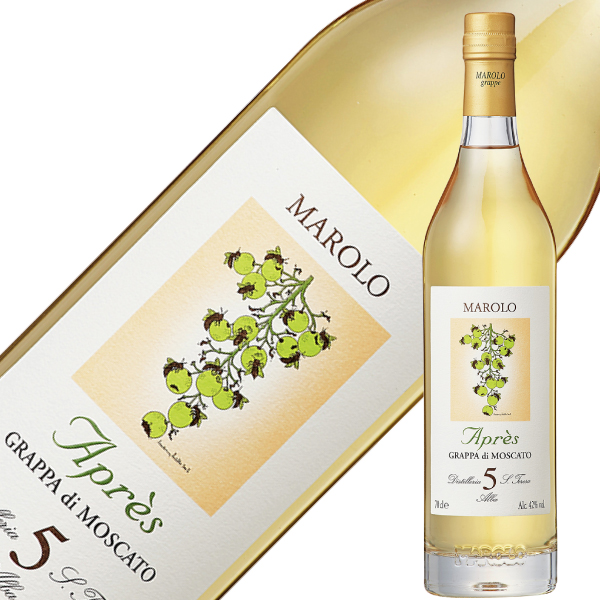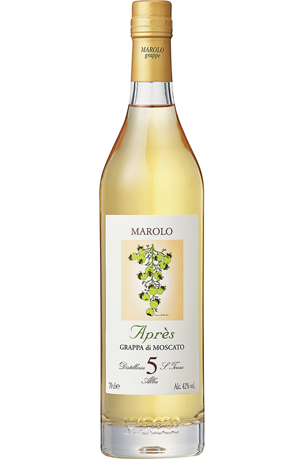 | モスカートの品種特有の美しいアロマが Grappa di Moscato Apres 5 anni マローロ グラッパ ディ モスカート アプレス 5年 |