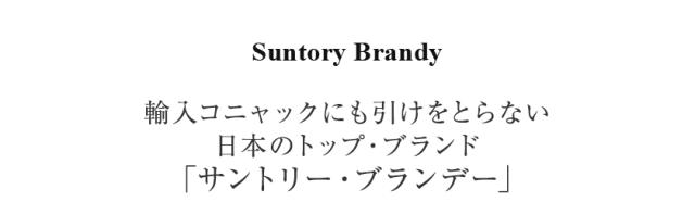 | V.S.O.P ならではの溢れんばかりの華やかさ。 フルーティな香り、まろやかな味わい、ほどよい余韻が魅力。 ストレート、ロック、水割りはもちろん、香りが引き立つソーダ割り、トニック割りもお薦めです。 |