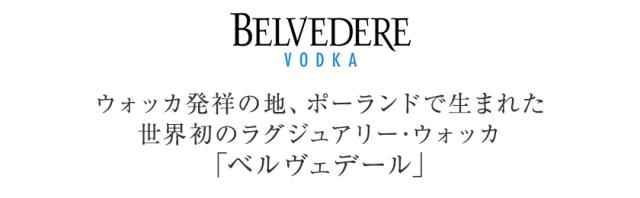 ![]() | 1996年、世界で初めてラグジュアリー・ウォッカとして登場したベルヴェデールは、2002年に「LVMHモエ ヘネシー・ルイヴィトン」と提携したことにより、ロンドン、パリなど大都市を中心にマーケットを急速に拡大。今ではその名を確固たるものにしています。 |
