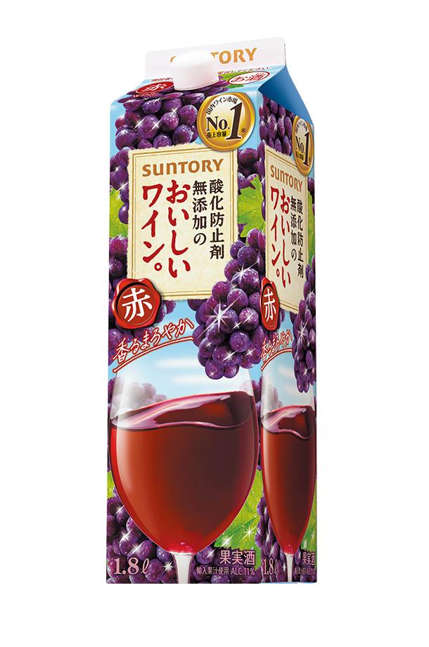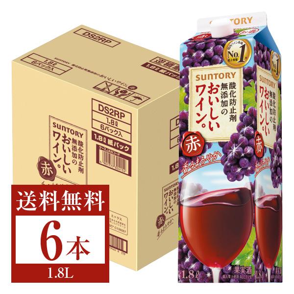 赤ワイン 国産 サントリー 酸化防止剤無添加のおいしいワイン。 赤 1.8L紙パック 6本 1ケース 包装不可 他商品と同梱不可