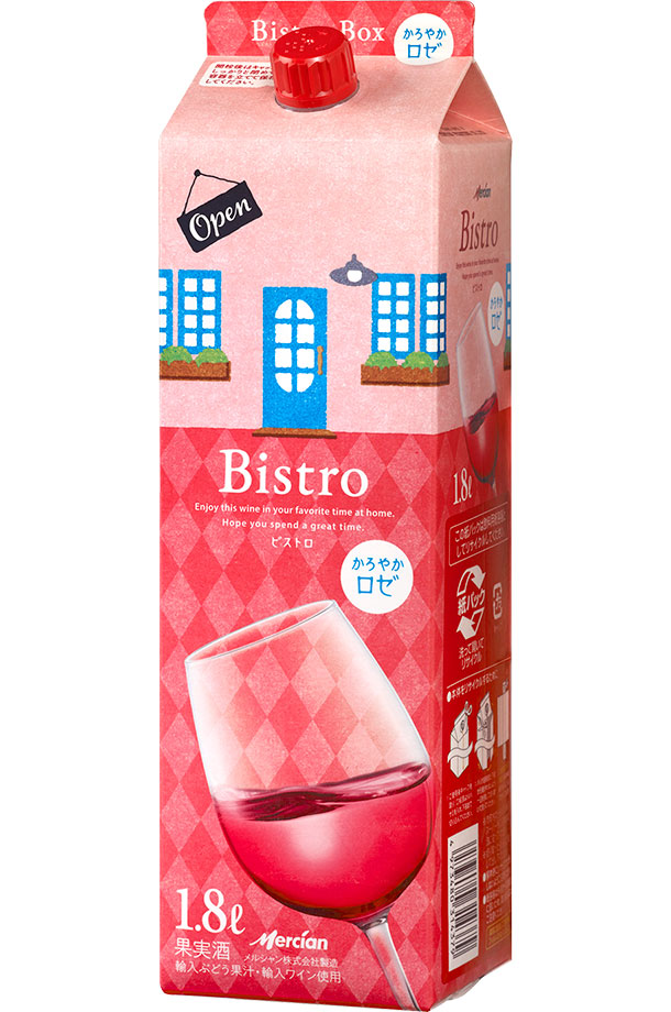 ロゼワイン メルシャン ビストロ かろやかロゼ ボックス 1.8L 1800ml 6本 1ケース 紙パック 包装不可 他商品と同梱不可