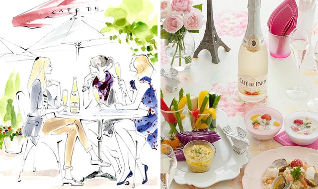 太陽の恩恵を存分に受け育った6種のブドウがブレンドされたスパークリングワインに自然のものから抽出したフレーバーを加えてつくられたカフェ・ド・パリは、フランスをはじめとして、スイスなど世界70ヶ国以上で愛されています。