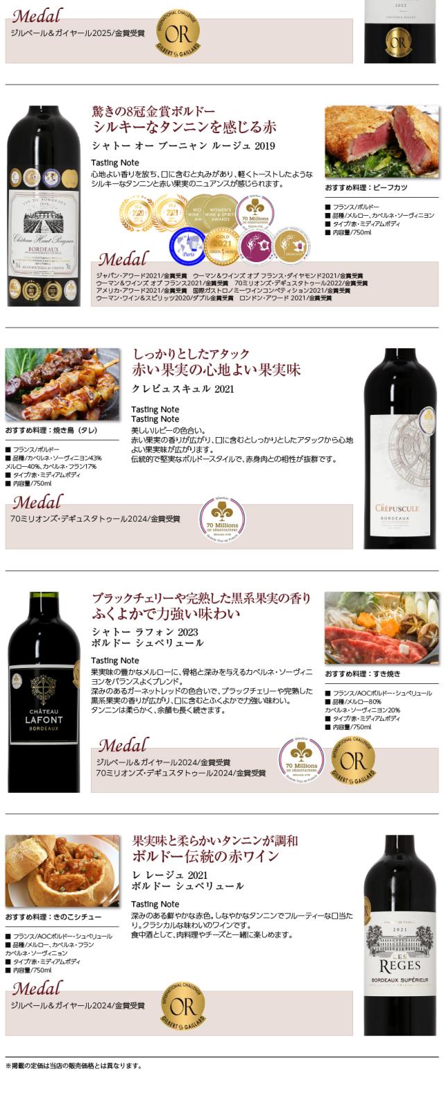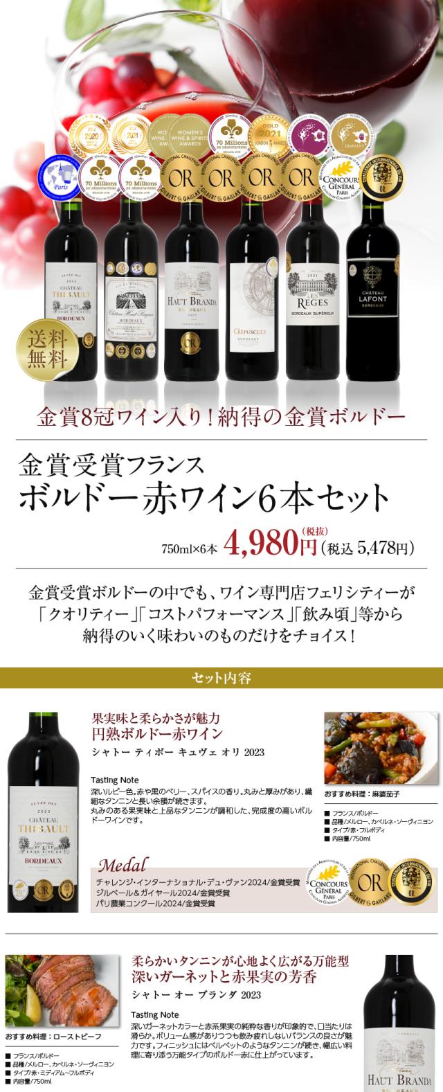 フランス ボルドー 厳選!金賞受賞ボルドー 赤ワイン6本セット 第74弾 750ml×6 送料無料 金賞ワイン 包装不可 飲み比べ ワインセット