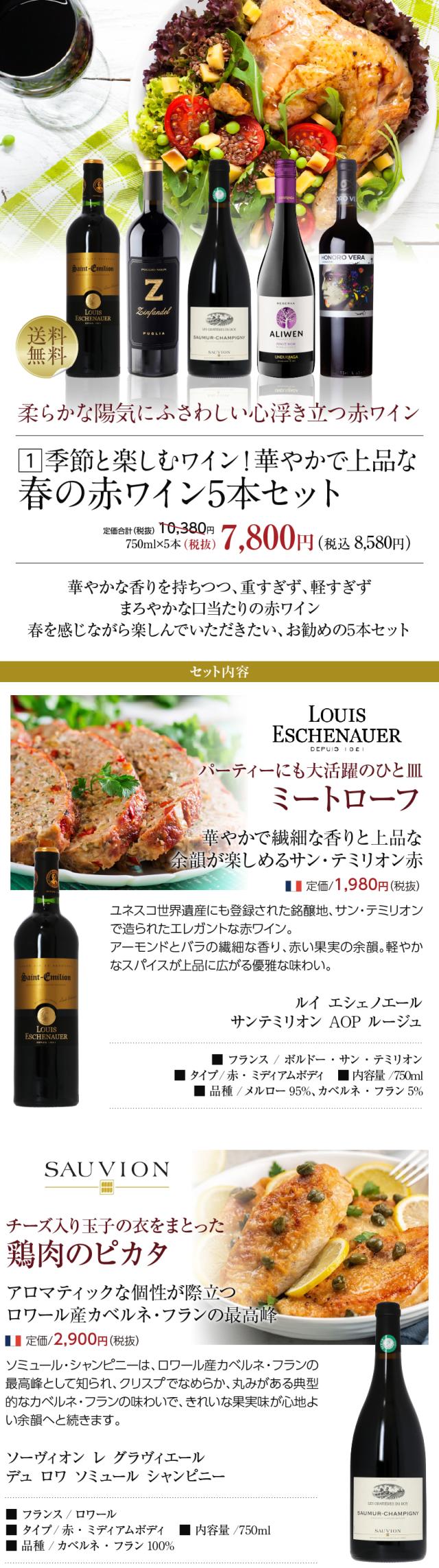 400円OFFクーポン 【1】赤ワインセット 季節と楽しむワイン! 春の赤ワイン5本セット 第1弾 750ml×5 送料無料 包装不可 飲み比べ ワインセット