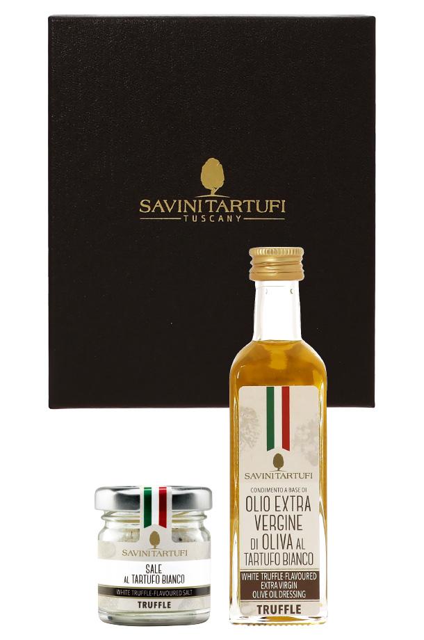 サヴィーニ タルトゥーフィ 白トリュフ塩 30g と 白トリュフエキストラヴァージンオリーブオイル 49.5g のセット 専用ギフトボックス リボン掛け