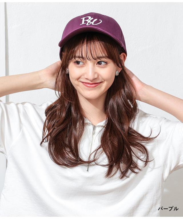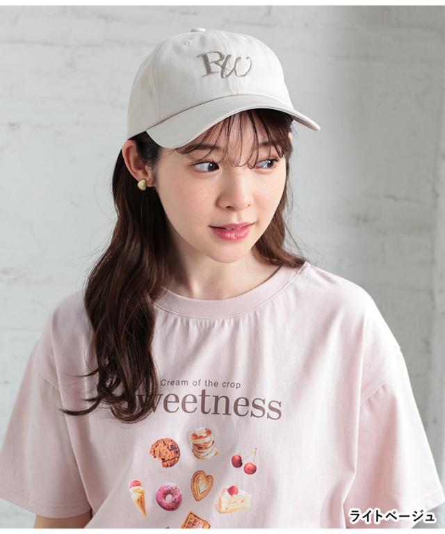 帽子 レディース キャップ 刺繍 ロゴ おしゃれ 綿 夏 白 黒 パープル チャコール Honeys ハニーズ ビッグロゴキャップ