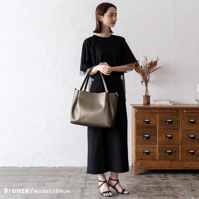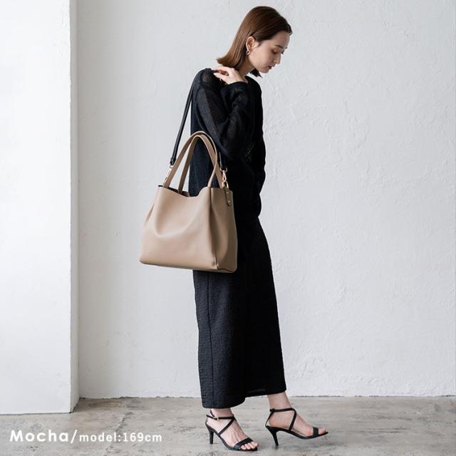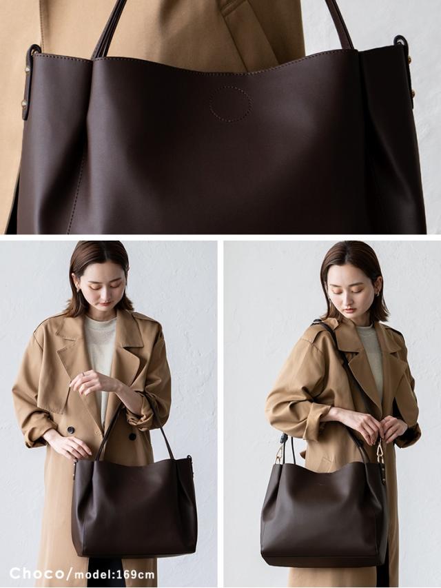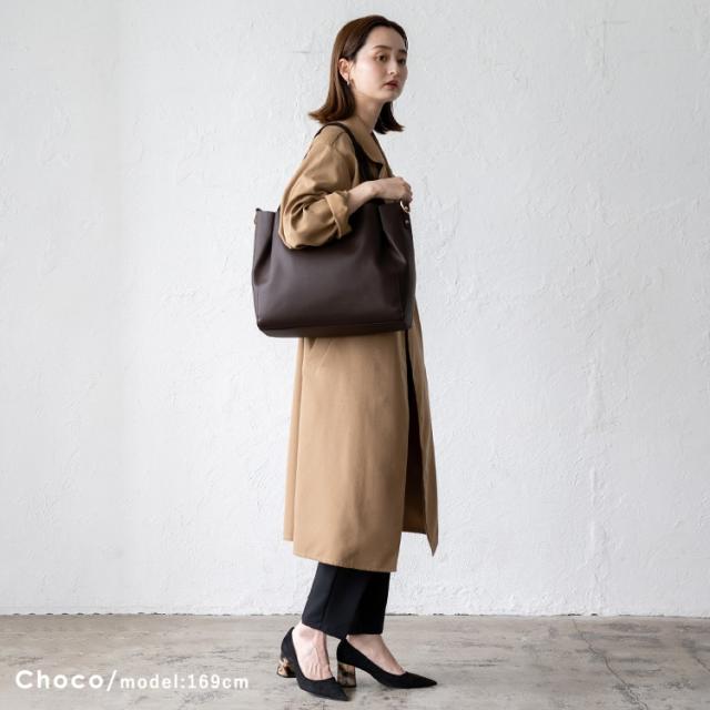 実用的なサイズ感とアウターの上からも肩掛けできる長めのハンドルが魅力。