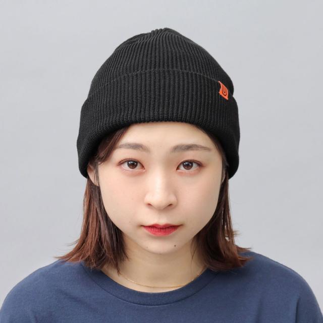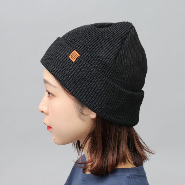 ニット帽 オレンジ ブラック メンズ シンプル ニットキャップ ハイゲージ編み 無地 ワンポイント
