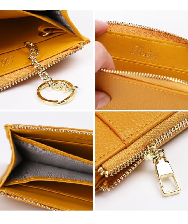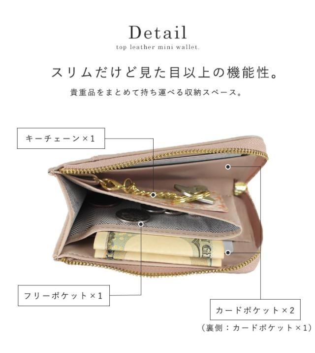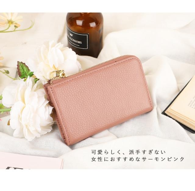 【LIZDAYS】L字ファスナー 本革 ミニ財布 キーリング付