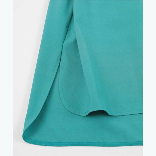 ラウンドネックで鎖骨がちらっと見える上品な首元に。