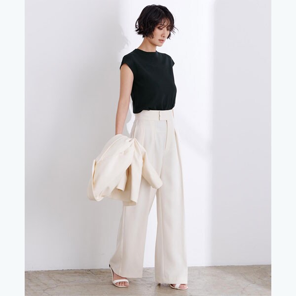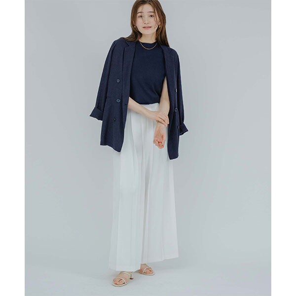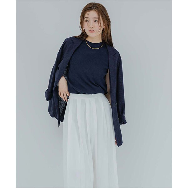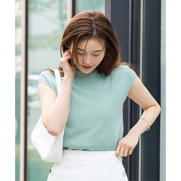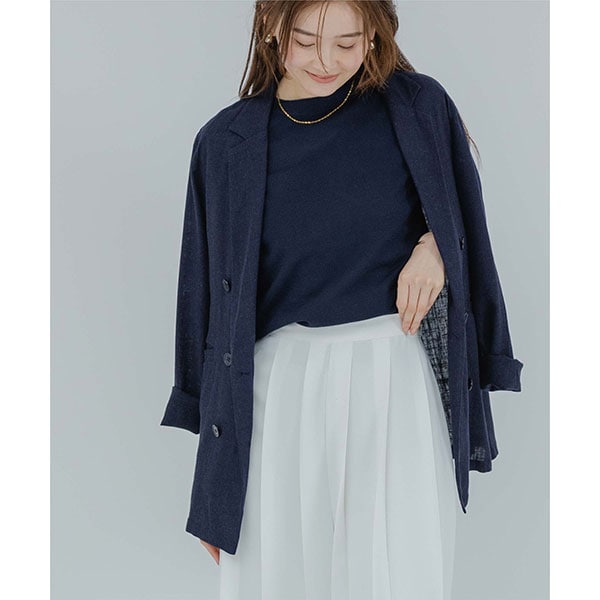 プチハイネックのデザインがモードさと女性らしさを演出してくれます。