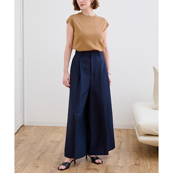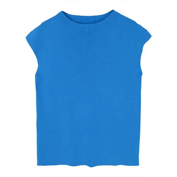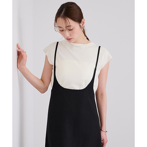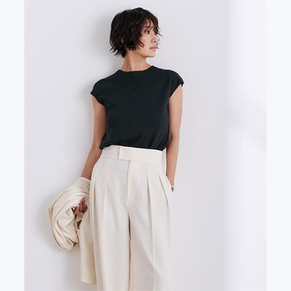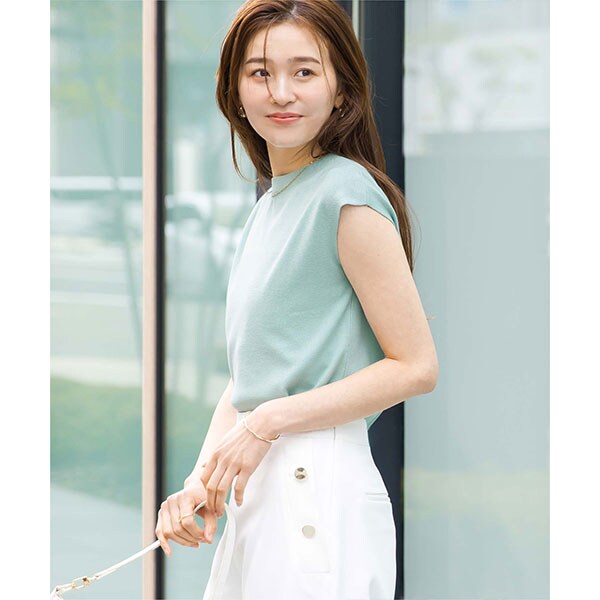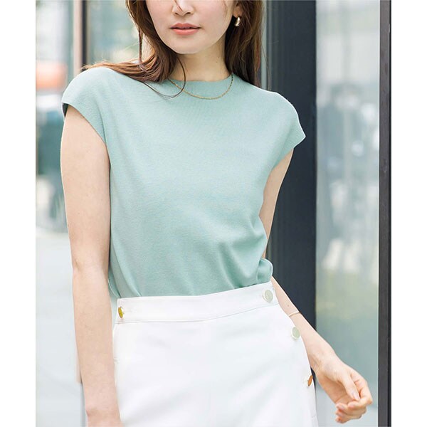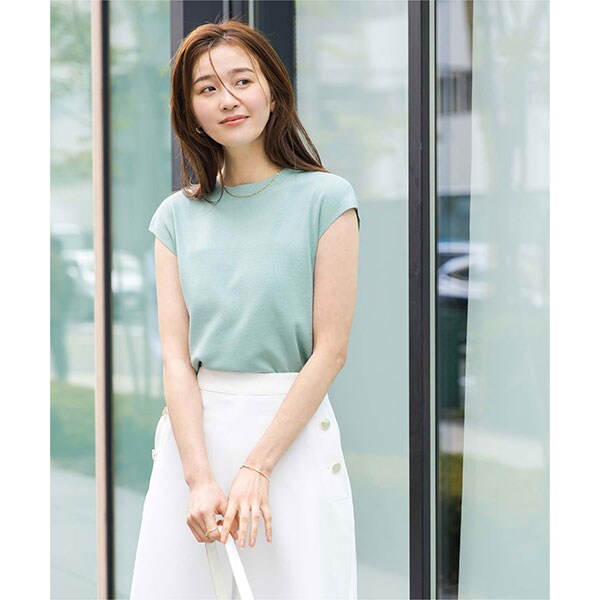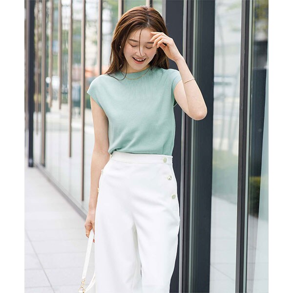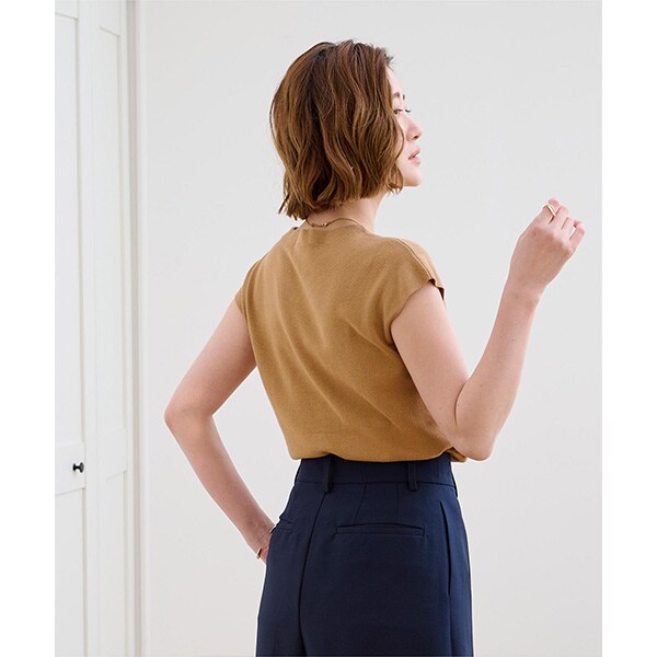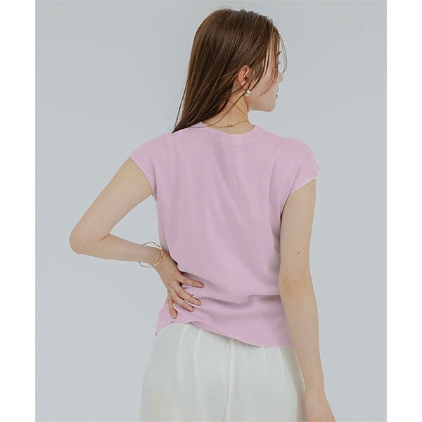 使い勝手の良いベーシックなフレンチスリーブニットトップス。