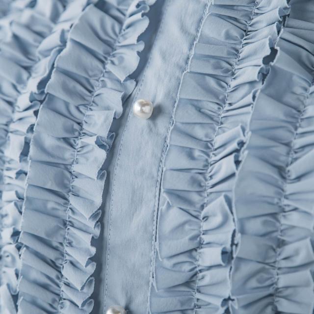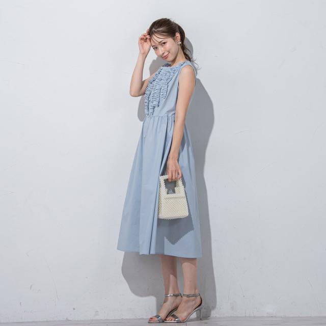 胸元のフリルが可愛いワンピース。