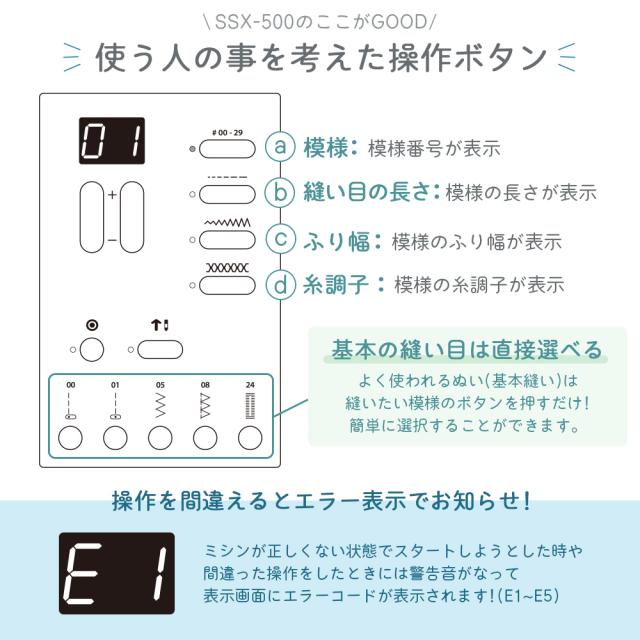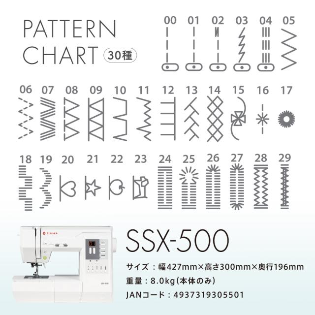 SINGER シンガー ミシン 本体 コンピューターミシン SSX-500 自動糸切り 静音設計 自動糸調子
