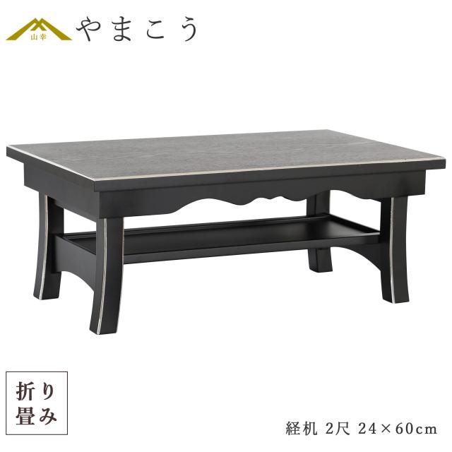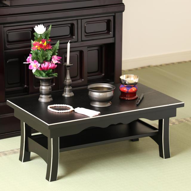 仏具 経机 折りたたみ モダン 幅60cm 仏壇用折り畳みテーブル コンパクト 収納 2尺 面銀 仏壇 台 黒 お供え 机 お盆 初盆 盆棚 精霊棚