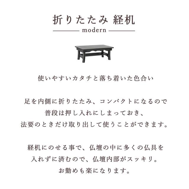 また、経机にのせる事でお勤めが楽になり、便利で安全にお参りしていただくことができます。