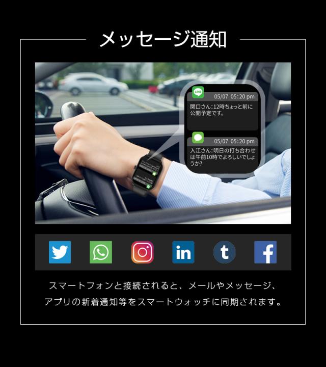 Bluetooth接続したら、メールやSNSなど様々なアプリの通知をスマホを取り出すことなく、スマートウォッチで確認できます。荷物運び、料理をしている最中、仕事やイベントと発表会の対応中など、すぐにスマホを取り出せない時でも、ちらっと手首を見るだけでメールやメッセージを確認して状況を把握できます。