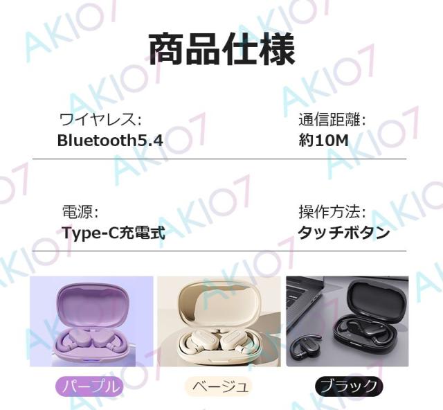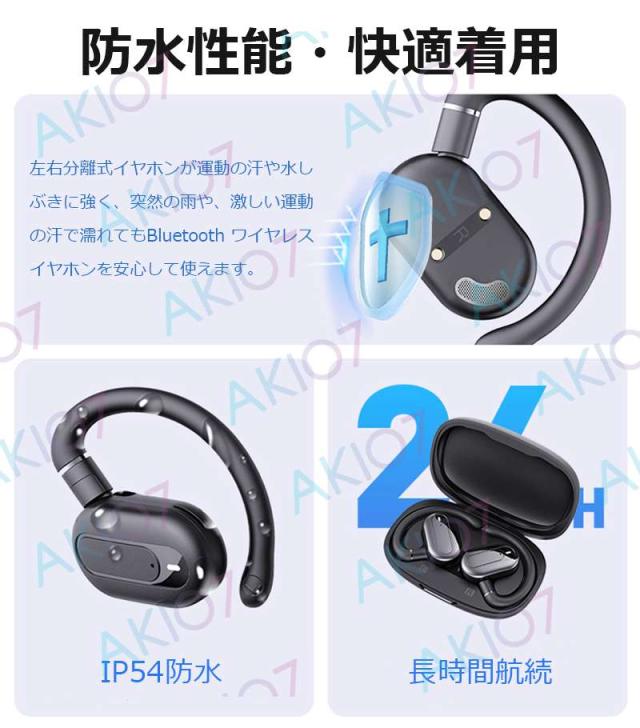 Bluetooth5.4 ワイヤレス イヤホン ヘッドホン 耳かけ ブルートゥースイヤホン 落ちにくい 外れない 快適装着感 両耳 防水 低遅延 Android/iPhone/iPad適用