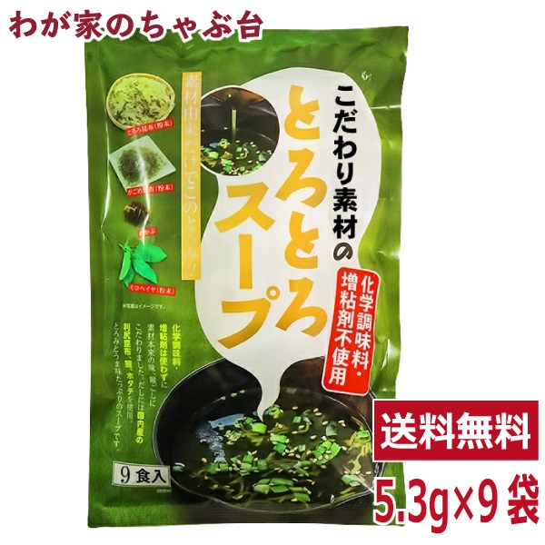 こだわり素材のとろとろスープ 1袋(5.3g×9袋) トーノー 東海農産 国内産利尻 こんぶ モロヘイヤ めかぶ とろろ昆布 がごめ昆布