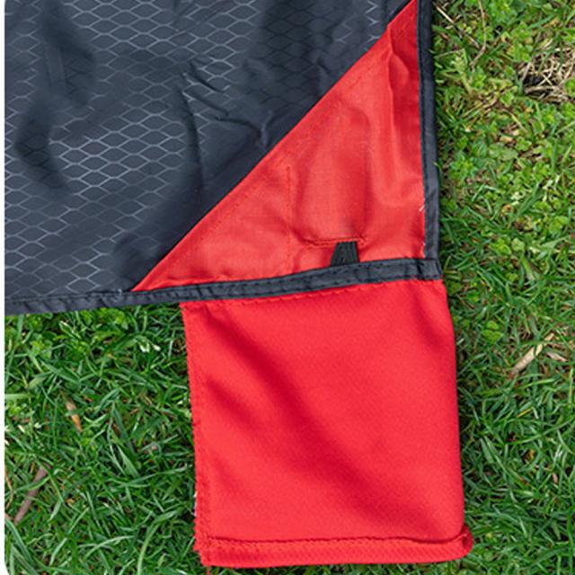 四隅に付属したペグを差し込めば風でとばされることなく設置可能です。