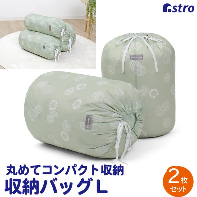 アストロ 収納袋 グリーン Lサイズ 2枚組 丸めて簡単収納 羽毛布団収納 巾着袋 収納バッグ 筒型 縦置き 積み重ね保管 626-33