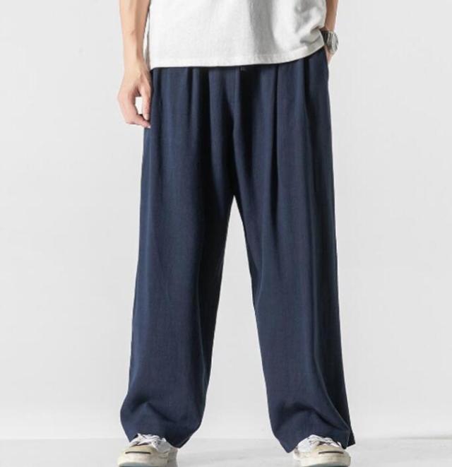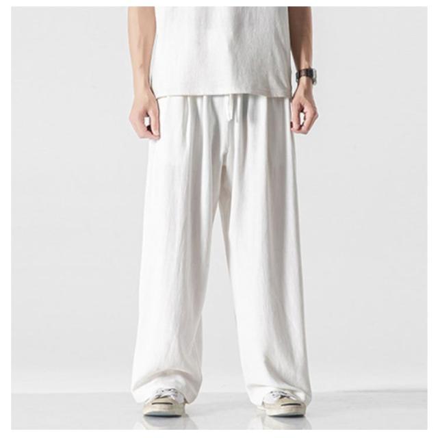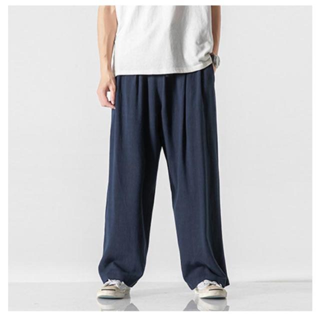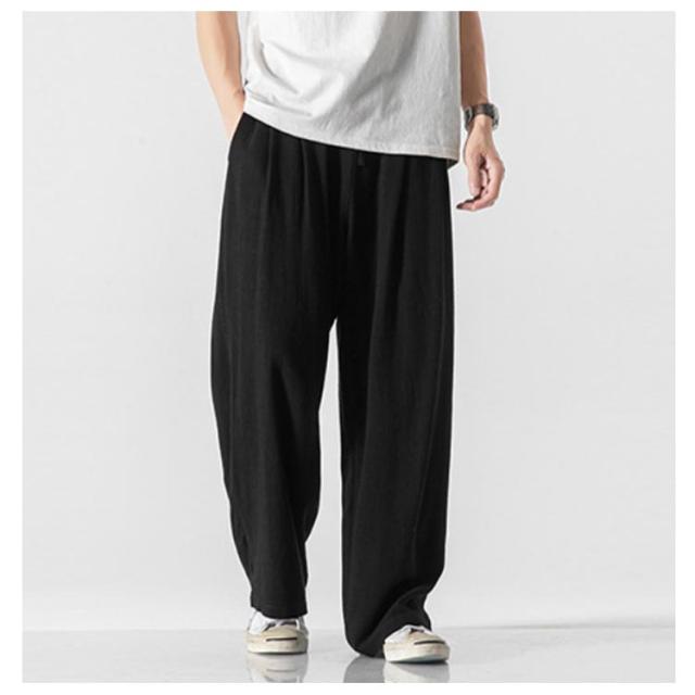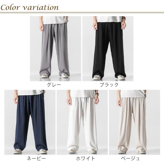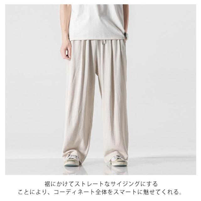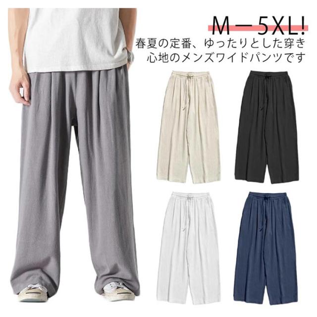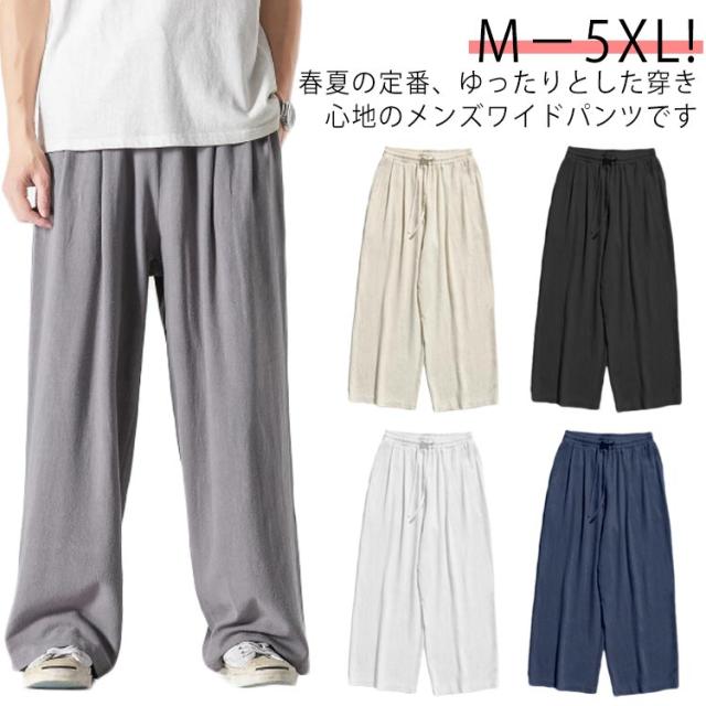 メンズ 大きいサイズ ワイドパンツ 涼しい 春夏 パンツ ボトムス イージーパンツ ゆったり 太め ウエストゴム リラックス ビッグシルエット カジュアル バギーパンツ 綿麻風
