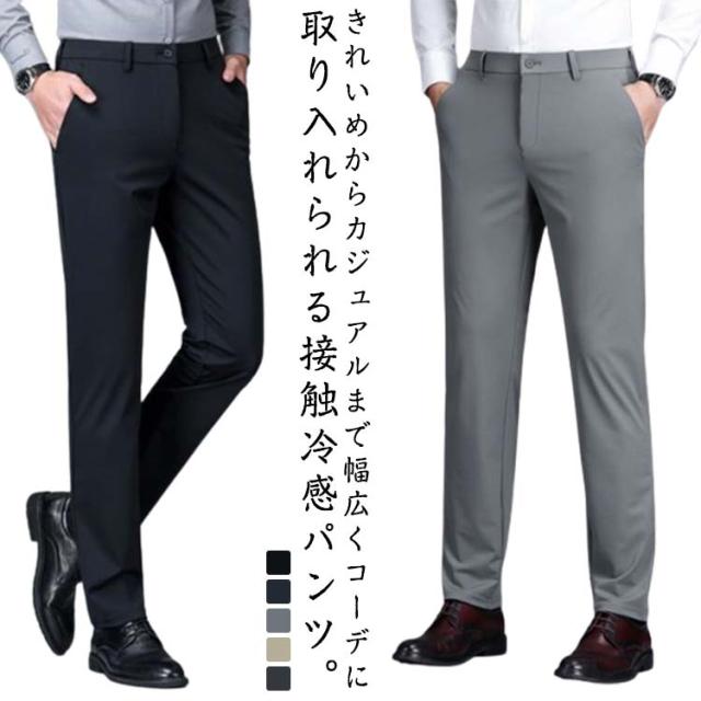 大きいサイズ スラックス 夏 メンズ 裾上げ済み 接触冷感 アイスシルクパンツ チノパン ストレッチ 吸水速乾 大きいサイズ ゴルフパンツ ロングパンツ ゴルフウェア ズボン スポーツパンツ 無地 軽量 薄手 ビジネスパンツ